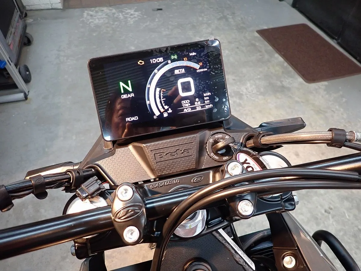 もちろんメーターはデジタルメーターで、オン/オフのマップ切り替えや、ABSのコントロールも可能。IG立ち上げ時のBETAロゴがカッコイイです!
