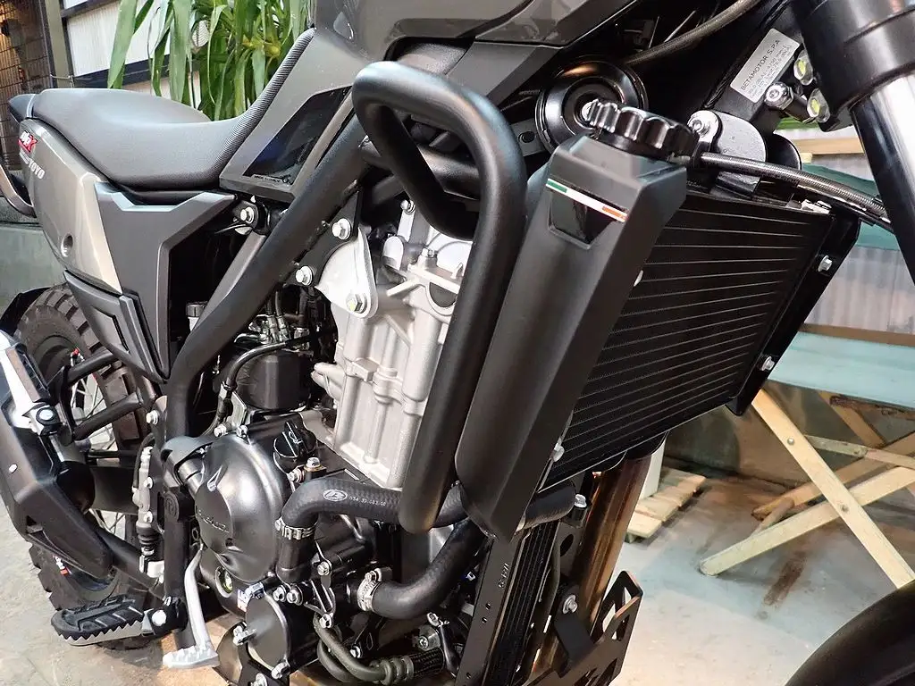 純正オプションのクラッシュバー&エンジンガード。見た目はラジエターガードとも言えますね!