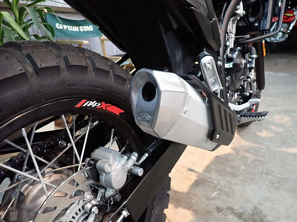 メーカーとしてはオフロードモデルとしての位置付けですが、実質的にはオンロードユースの割合が高い仕上がりとなっており、これまでの競技用マシンベースの設計ではなく、公道使用を前提として設計された車両です。