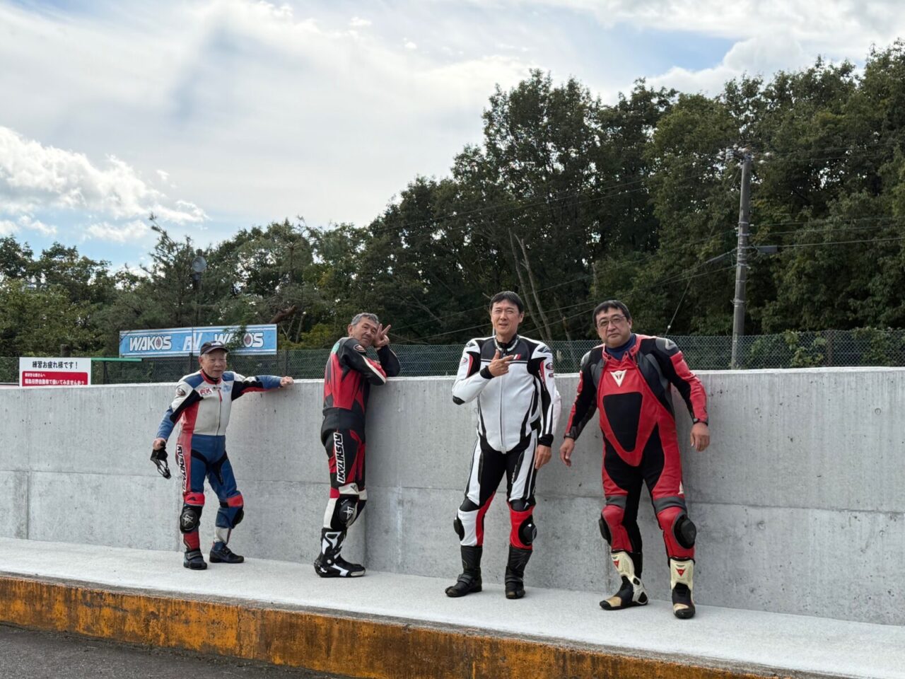 YOもそうなんですが、黒赤の革ツナギのカラーが多い今回の参加者の皆さん。^_^