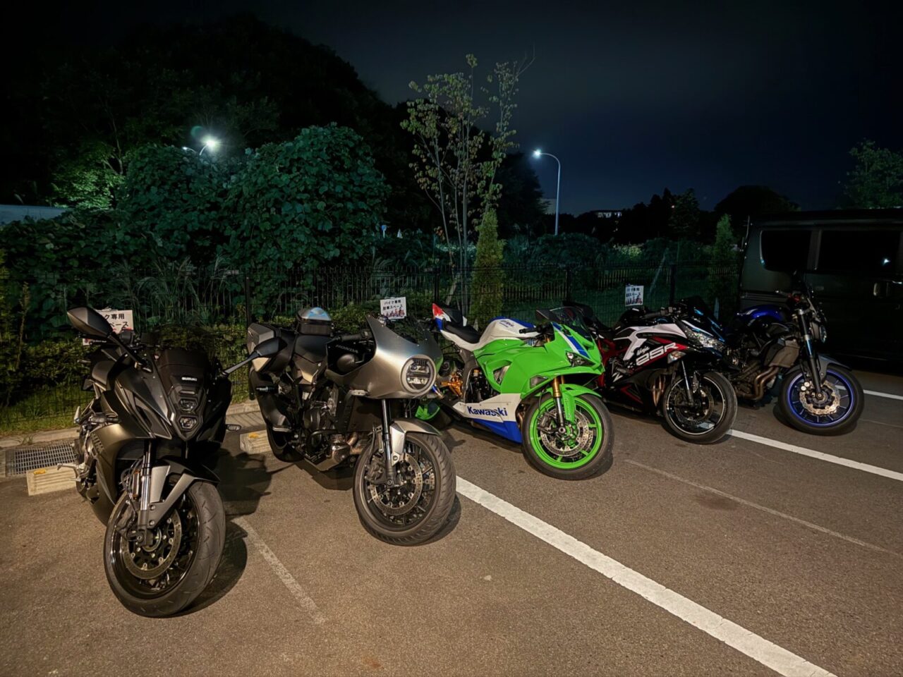今回の自走組の5台です!革ツナギを積んでくるので、その積載がとても重要なんです。YOも前日まで悩みましたが、今回は色々とパッキングの勉強が出来ました!大切なことですね!^_^