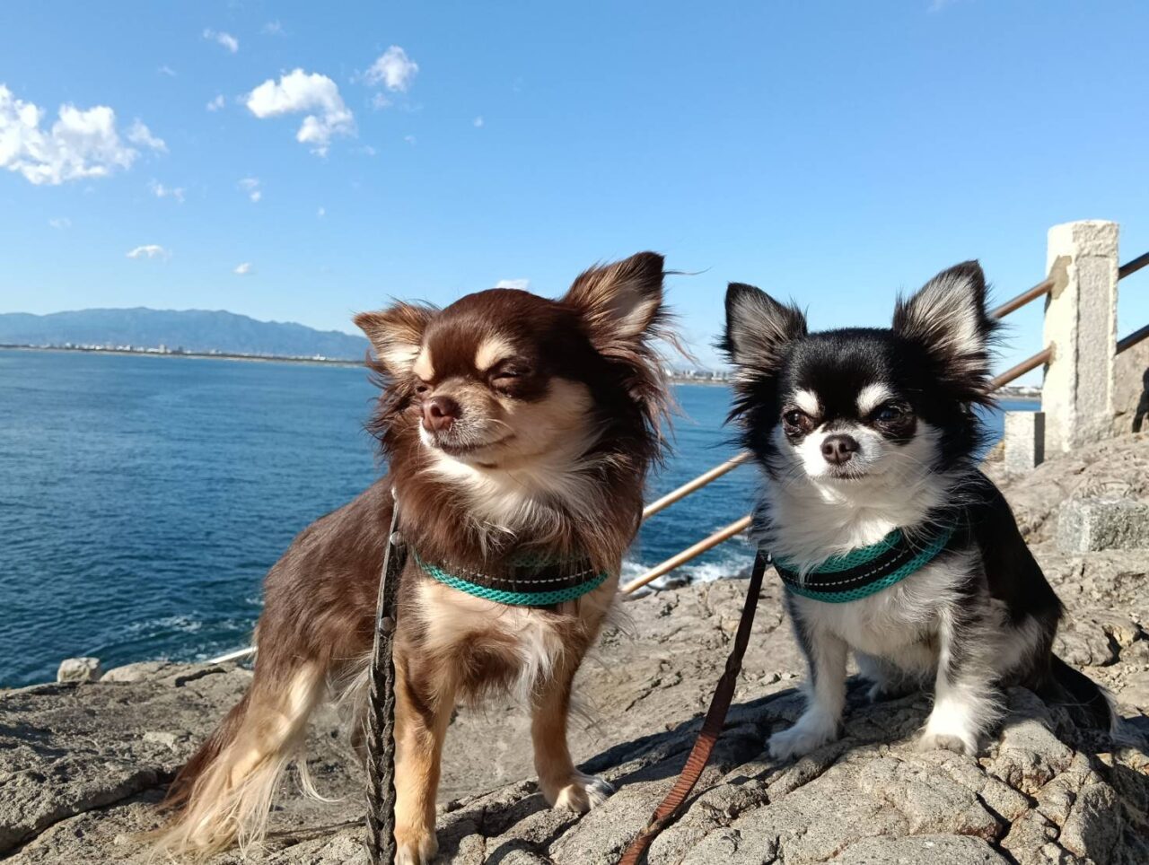 チワワの可愛いトラビス(栗色の子)とウィリアム(黒色の子)