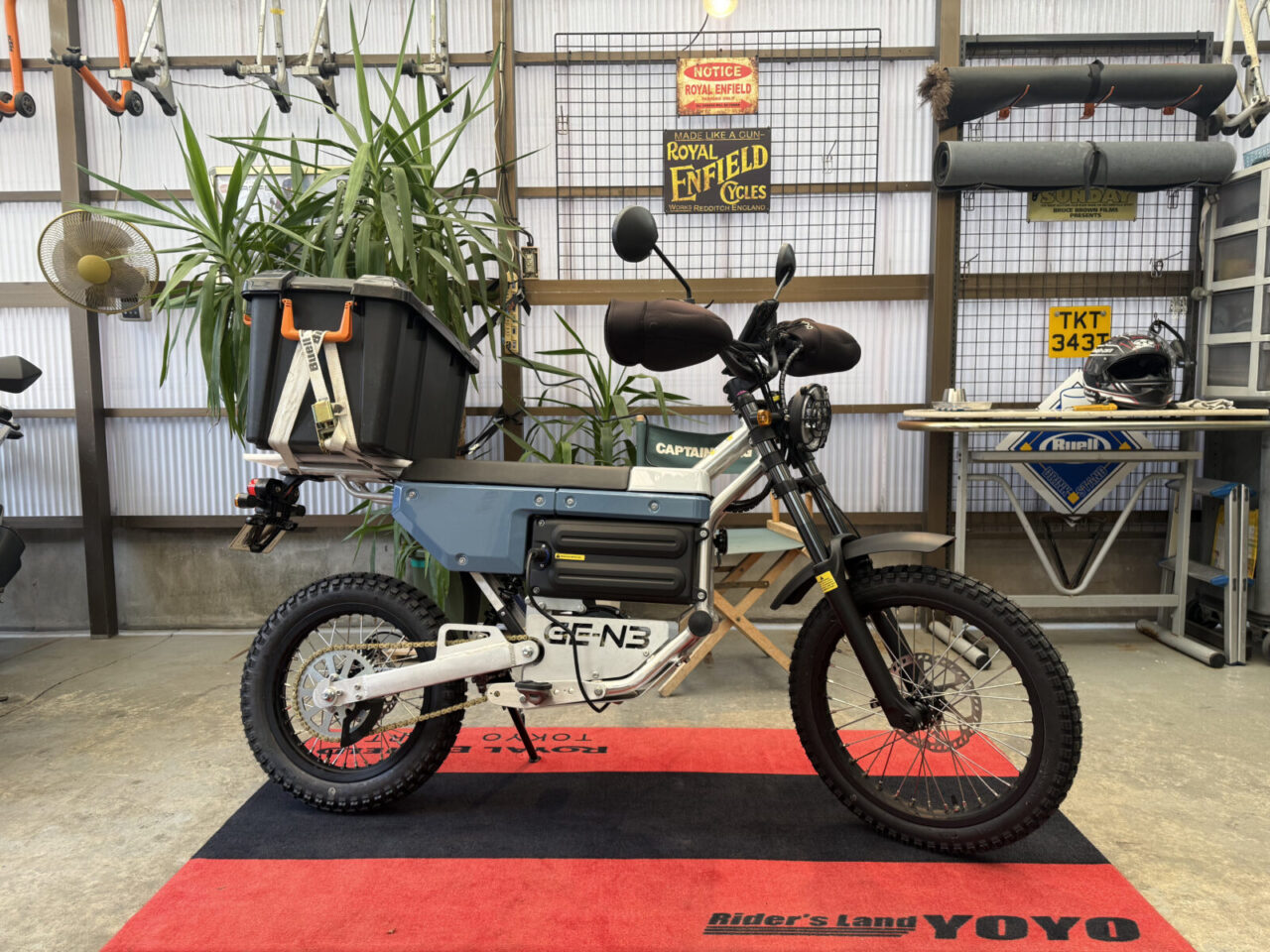 KUMAさんは、以前セローにも乘っていて、林道ツーリング等の走りも経験済み!そんなキャリアを持ちながら、HONDA CT125からのお乗り替えとなりました。決め手はCOMPACTで軽量!GE-N3は何と言ってもアルミフレームで、コンパクト軽量が売りで、何と58kg!そして、街中にもフィットするデザインと、都会派のオーナーにはピッタリのコミューターなこと。デザインって重要ですよね!