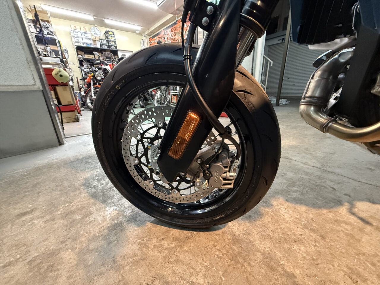 フロントキャリパーはニッシンの2ポットキャリパー!意外とシンプルな感じだけど、SUZUKIが認めた組み合わせだから、全く問題ないストッピングパワーと耐久性なんでしょうね。気になる部分ですね!