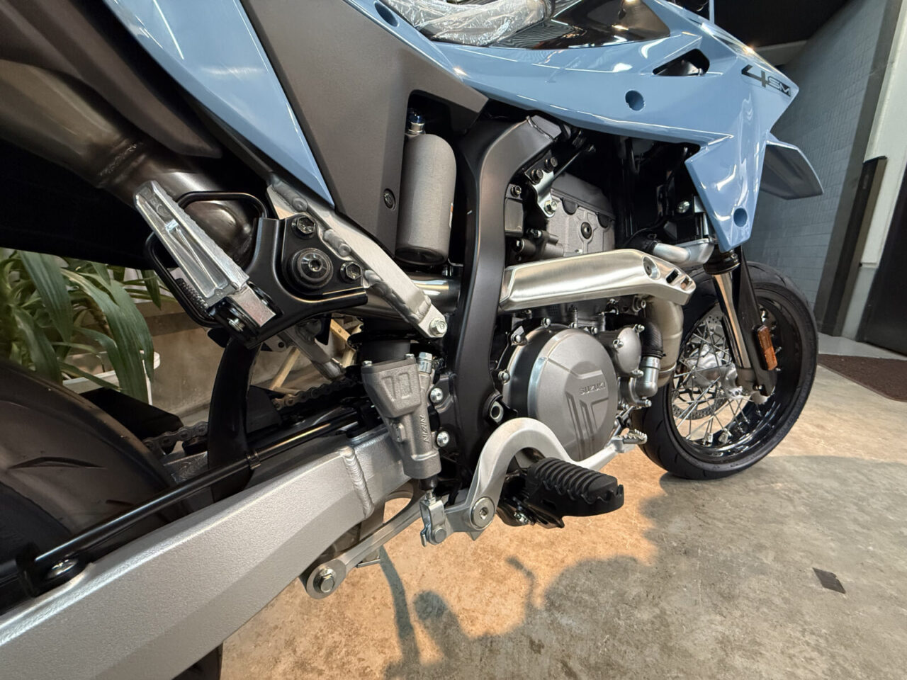 実はこのDR-Z 4 SMはフリー在庫車なんです^_^。街乗りからロングツーリング!そしてサーキット走行など、正に多目的で遊べて、パフォーマンスも最高とくればとても興味がありますし、SUPER MOTOスタイルは久しぶりの発表じゃないでしょうか?今だからこそモタードスタイルがカッコイイ!お洒落なオートバイを発表して頂き、スズキに感謝ですよね!