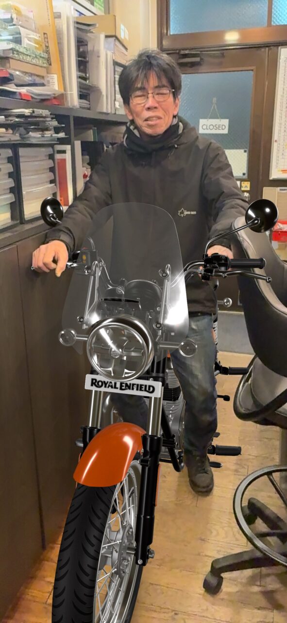 番外ですが、ROYAL ENFIELD のNEW METEOR350のホームページを見ていたら、カラーチャートのところに3DのQRコードが隠れています。全てのモデルにあるのですが、YOは気が付いたのが昨日・・・(笑)ディーラーの代表なのに・・・申し訳ない。こんな画像が作れました。お試しあれ!