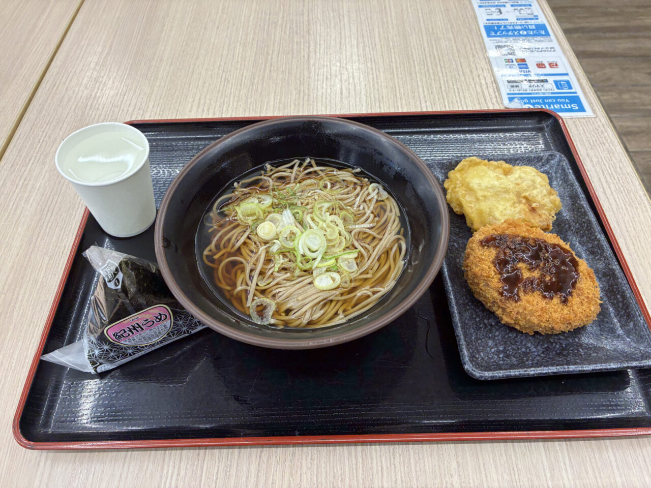 YOのルーティンは東関道の酒々井SAに立ち寄り、その日の朝食をとる事から始まります。これがとても大事で、朝のメニューをチョイスする事から、1日の正規の決まり事を決めて行きます(笑)。今回のメニューはかけそばに、梅おにぎりに、とり天・コロッケ。チョッと朝から食べ過ぎの感はありますが、ここで制限を掛けると定休日じゃない!FREEDOMに食すことが大事なんですね!アハハ。