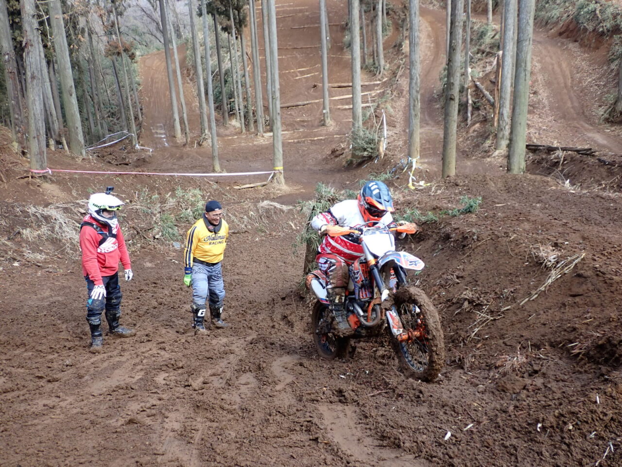 これは1周目。タイヤに付いたドロ団子!もうスリックタイヤみたいにまん丸になってしまうんですね。でもみんなどうにかクリアーして行くんですよ!凄いよ楊遊会!左はYOです!助っ人。NARIさんも無事クリアー!