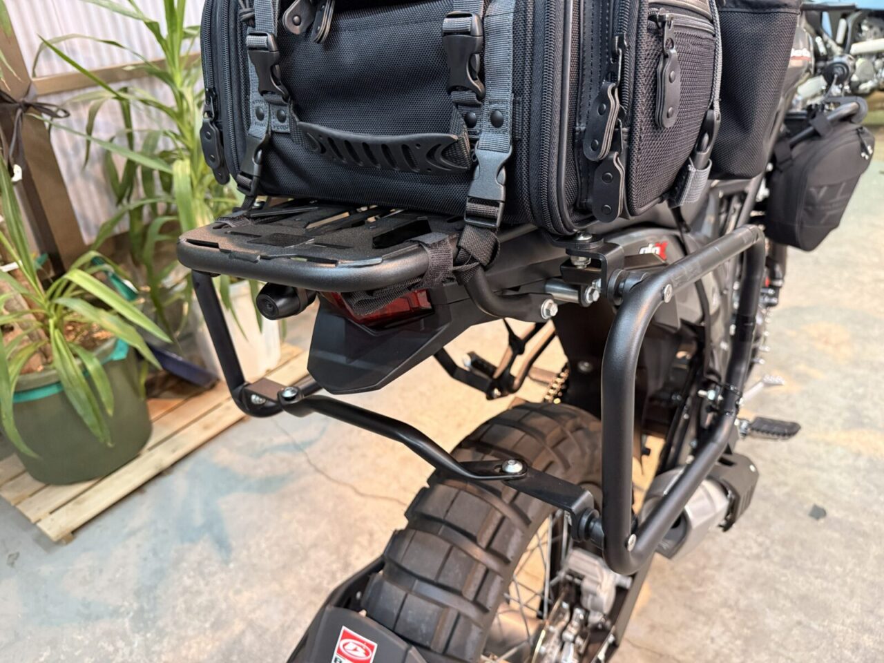 クラッシュバーに装着のサイドバックや