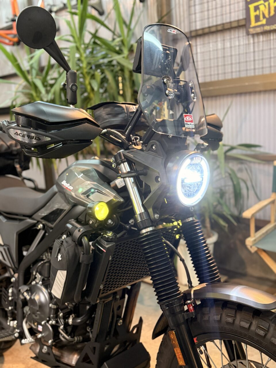 まだあまり馴染みが無いモデルなんですが、コンペテションモデルのラインナップが多いBETA社の唯一のストリートモデルとして、2025年モデルとして排気量をアップして登場したモデルなんです。他にもALP4.0と言う、もう少しオフ寄りのモデルもあったり、BETA社の新たな試みが見えるシリーズなんです。