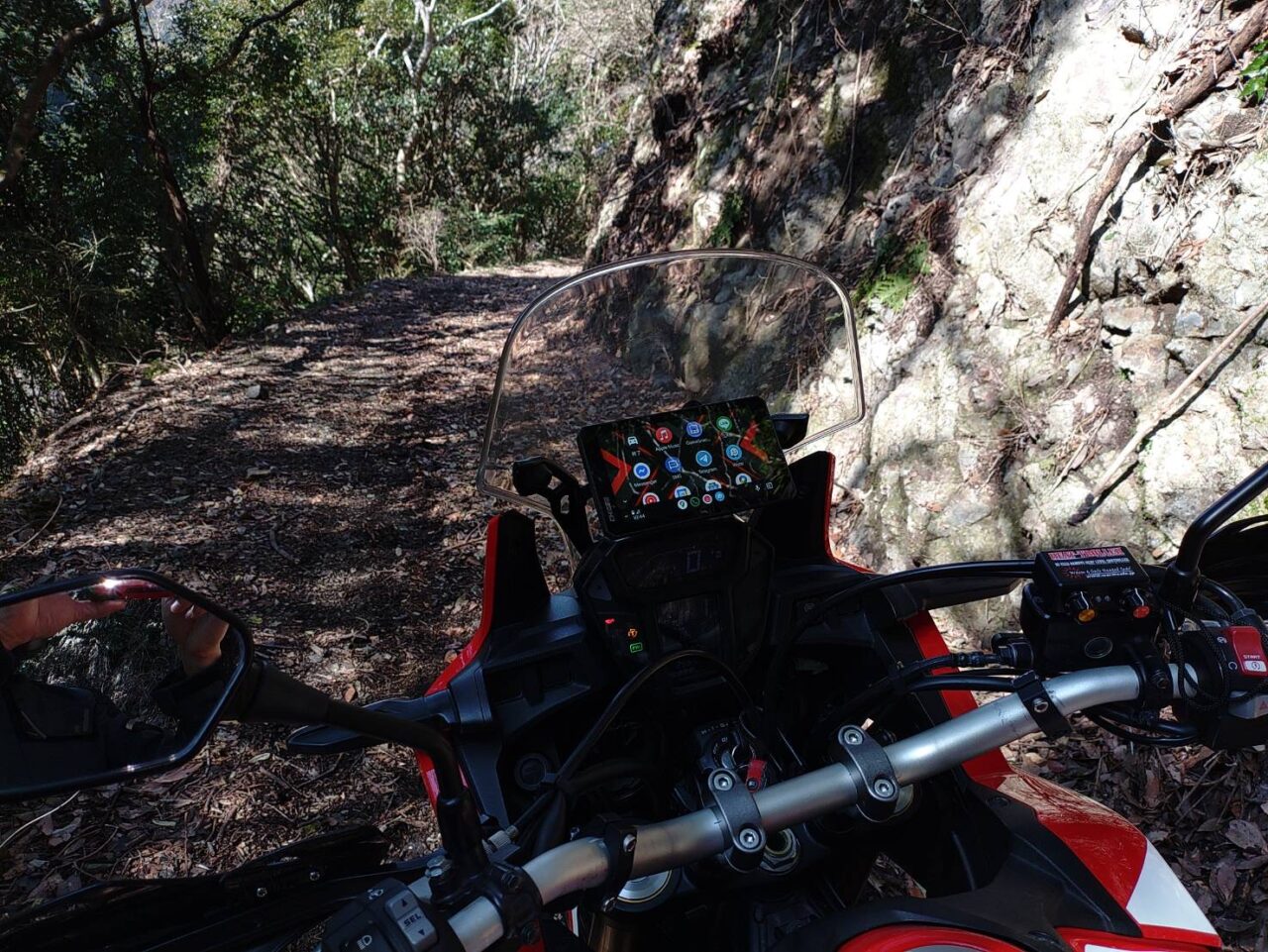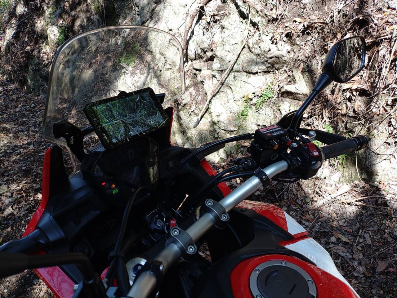 実はAKAさんもそんなトラブルがあったお1人で、気が付いたら林道でスマホを落としてしまい、探しに行った仲間が、後続車に踏まれてボロボロに変わり果てたスマホを見付けて来た時は、正直オフローダーだからこそ付けるべきスマートモニターと思いました。