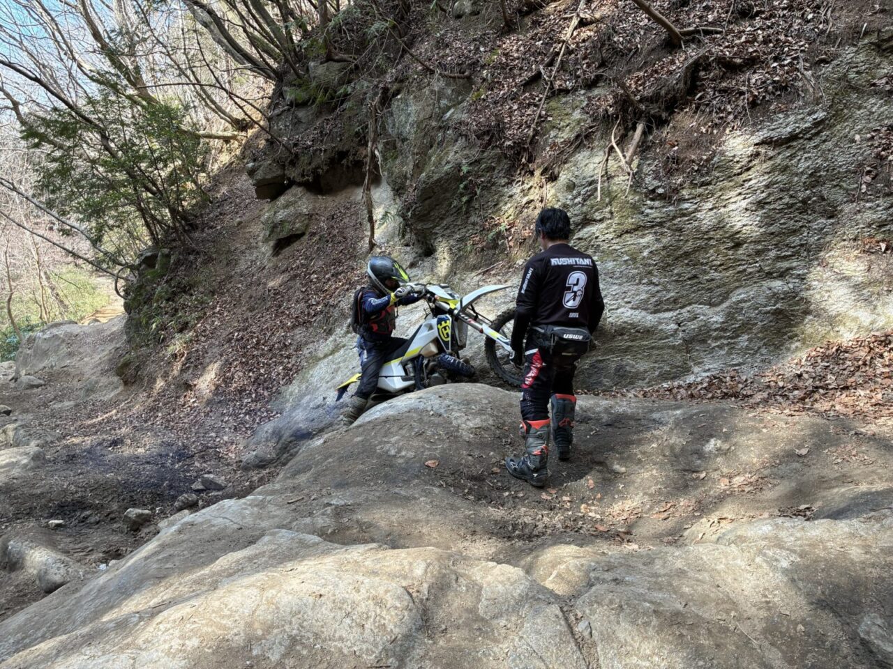 こちらも同じポジションで、NARIさんも奮闘する!こんな狭い岩の中を走るのだから、マシンはチョッと傷みますよね!BETAも転倒などはしませんでしたが、チョッと傷が付きました。。。残念だけど楽しいから許しましょう!(笑)
