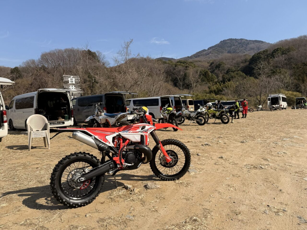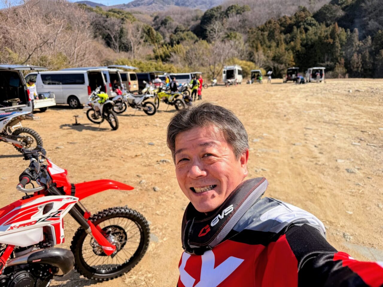 粘っこい出力特性を持つBETA RR X-PRO 2T 250は、とても乗り易く、トルクも低速でモリモリあって、難所も比較的スンナリクリアー。と言ったって、今回は久しぶりの白井という事もあり、楊遊会白井常連組の初心者コースを走らせてもらったので、クリアー出来て当たり前なんですけどね。。。アテンドのOKBさんからも、適切なコース案内が有ったので、楽しく走る事が出来ました!ありがとうございます!